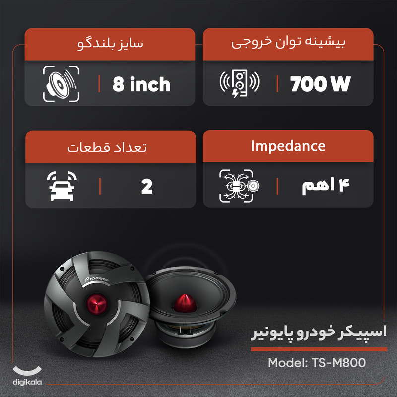 میدبیس خودرو پایونیر مدل TS-M800 Pro مجموعه 2 عددی