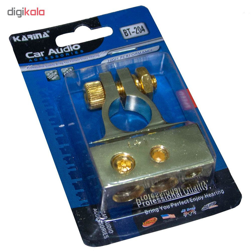 استفاده از ترمینال سر باطری خودرو کارینا مدل BT-204 برای کسانی که قصد نصب سیستم صوتی جدید بر خودرویشان دارند توصیه میشود. این ترمینال دارای چهار نقطه اتصال کابل است و استفاده از آن موجب عدم افت ولتاژ و جریان انتقالی از باطری خودرو به سایر ادوات مصرف کننده برق خودرو از قبیل آمپلی فایر ، ساب وفر و بلندگوها میشود. با استفاده از این قطعه انشعاباتی که در سر باطری باید ایجاد بشوند، بدون بهم ریختگی و به درستی ایجاد میشوند و موجب نظم و ترتیب در ابتدای مسیر سیم کشی سیستم صوتی خودرو می شود. جنس ترمینال سر باطری از آلیاژ مس و برنج و آهن میباشد و قابلیت اتصال کابل های سایز 2 ، 4 و 8 گج را دارد. سر باتری خودرو کارینا مدل BT-204 برای تمامی خودروهای داخلی و خارجی قابل استفاده است. بر تمامی انواع باتری های خودرویی وارداتی و تولید داخل نیز قابل استفاده است.