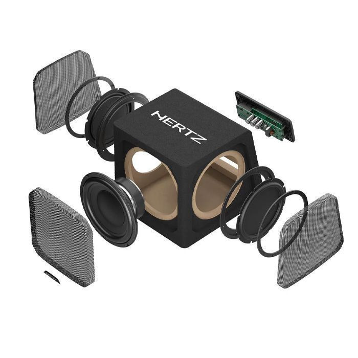 ساب باکس اکتیو جدید برند هرتز مدل DBA 201 که دارای یک عدد ساب ووفر 8 اینچی و دو عدد رادیاتور پسیو 8 اینچ در دو طرف میباشد.